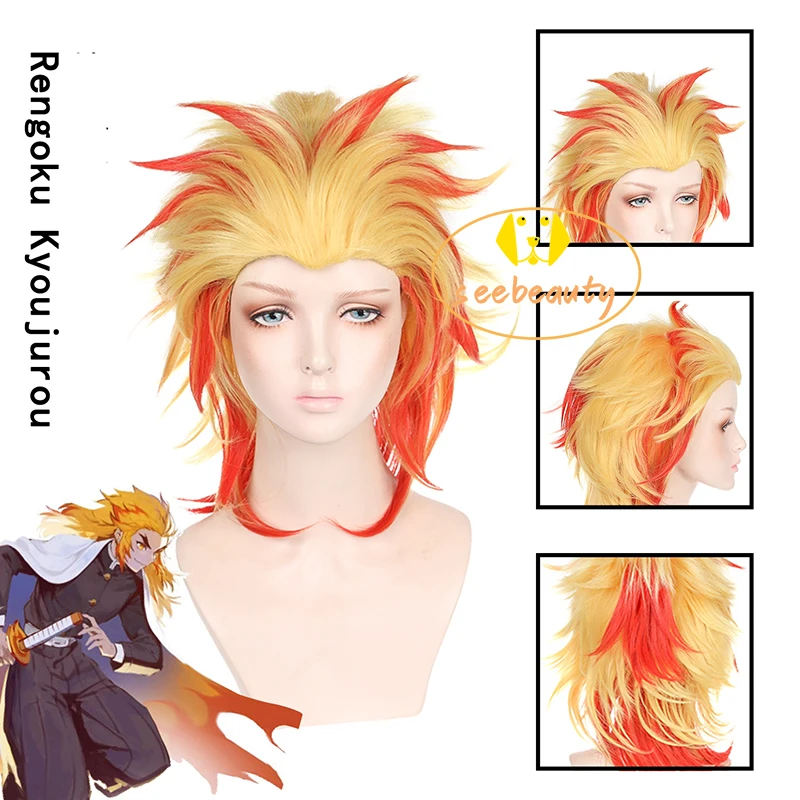 Anime Demon Slayer Kyojuro Rengoku Cosplay Wig Yellow Hair Red Streaks Halloween Role Play Hair Heat Resistant Synthetic Hair Cosplay Costumes Aliexpress