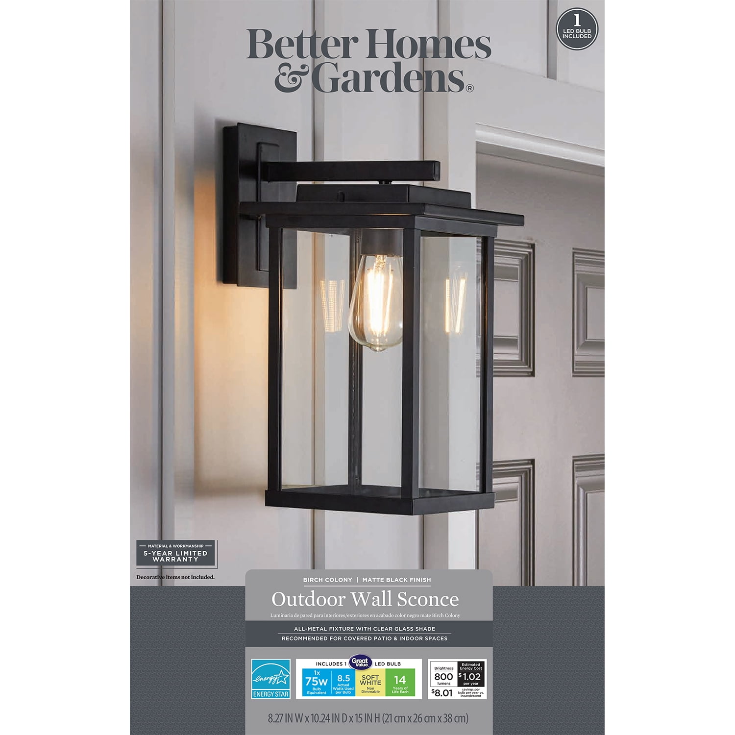 Better Homes Gardens Modern Large Square Outdoor Wall Sconce Black Light St19 Bulb Included Walmart Com